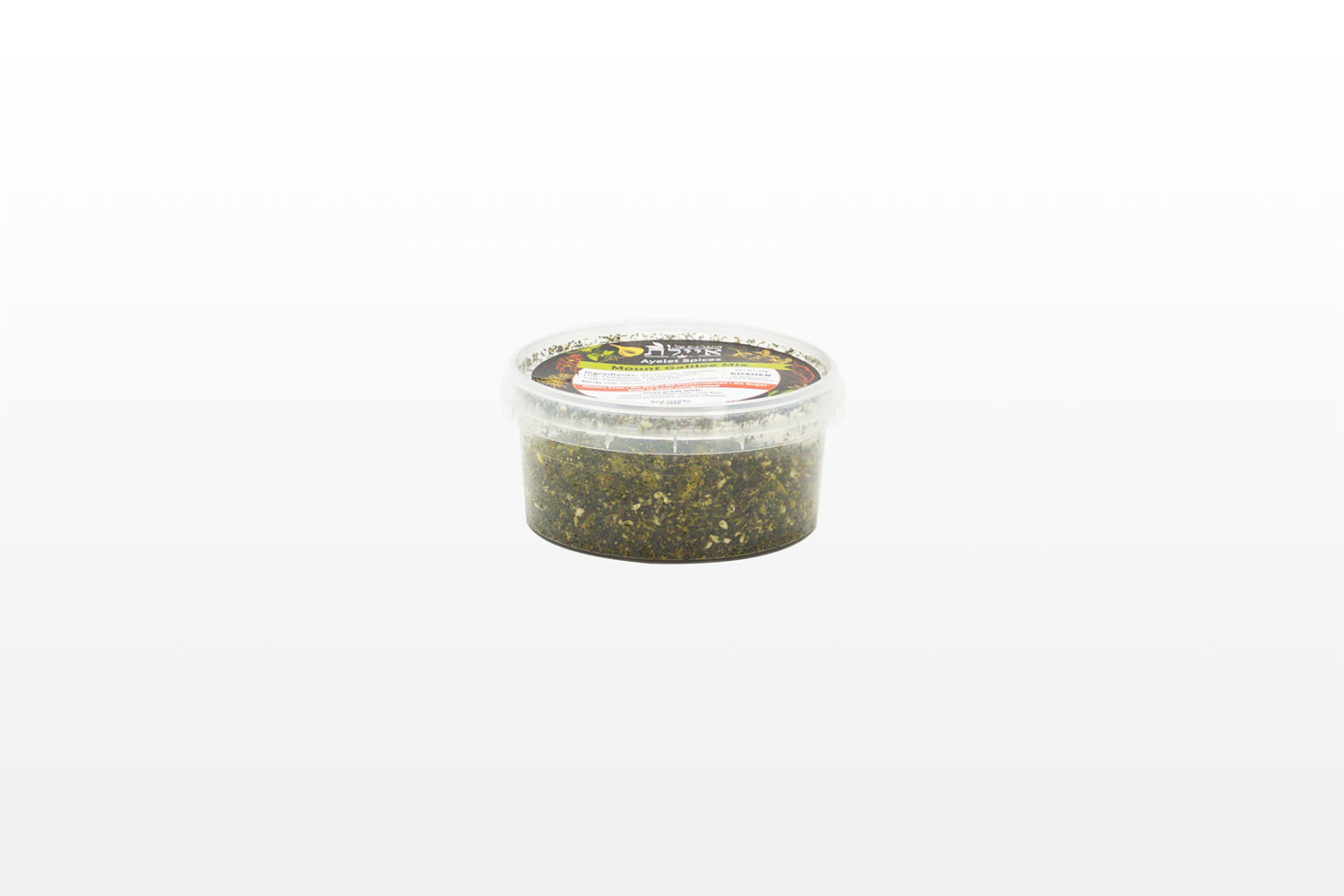 Ingredients: Almonds, Sesame, NET WT. 50g Dill, Oregano, Parsley, Garlic, Salt, Flaxseeds, Olive Oil.